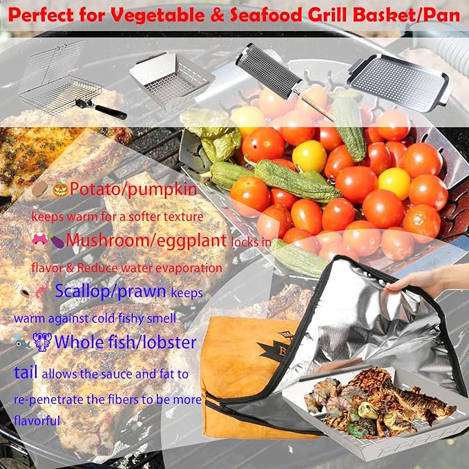 - Generous Size for All Your Meats: Designed to accommodate large cuts of meat, our BBQ blanket measures 15” W x 21” H x 7” D, offering plenty of space for everything from turkey and pork shoulder to roasts and whole chickens. Perfect for BBQs, picnics, and camping trips, it can hold multiple pieces at once for your convenience.
