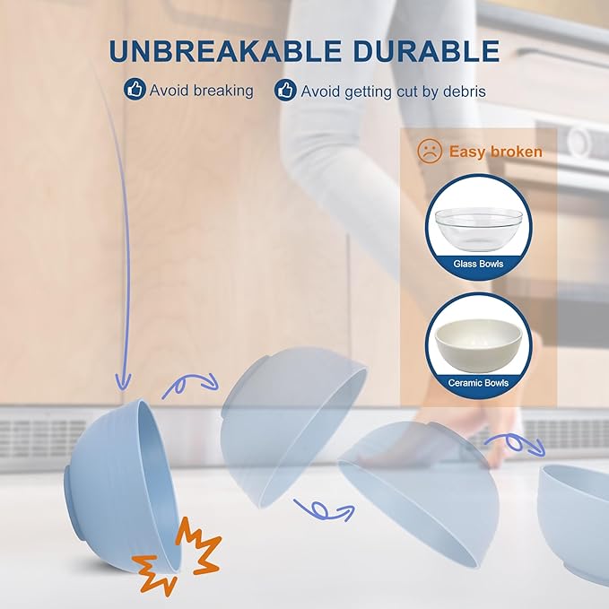 - 【Unbreakable & Lightweight】: Unlike glass or ceramic bowls that are prone to breakage, Cereal bowls sturdy, and child-friendly. They are also lightweight, making them convenient to carry for outdoor activities like camping, and making them easy for little hands to hold onto.
