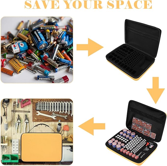 - Environmental Protection - The battery organizer storage case can hold AA, AAA and button battery, store new and used batteries, avoid misplacing, tidy your room and protect the environment.