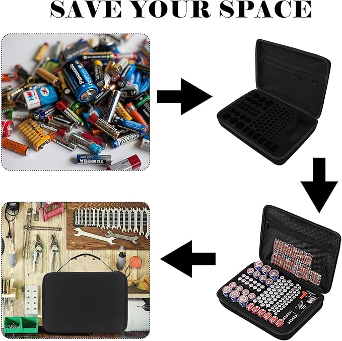 - Environmental Protection - The battery organizer storage case can hold AA, AAA and button battery, store new and used batteries, avoid misplacing, tidy your room and protect the environment.