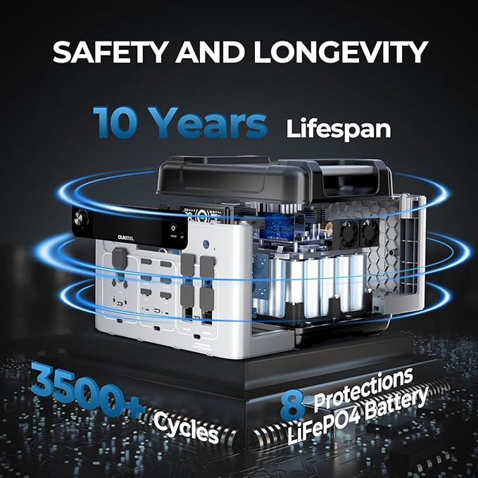 - 【Over 10 Years Lifespan and LFP Battery】 OUKITEL solar generators run on ultra-durable LiFePO4 batteries—outperforming standard batteries with 3,500+ charge cycles and a lifespan over 10 years.The OUKITEL team also provides you with a 2-year service and you can trust us.