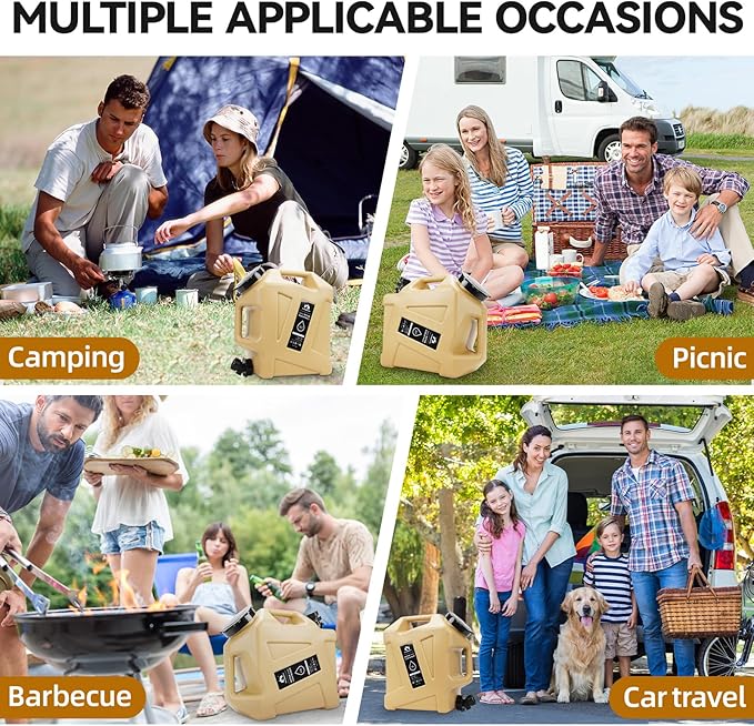 - 【 Multifunction Use 】The water storage can be used to store drinking water, beer, drinks for camping, camping, picnics, barbecue, and hiking. The water storage can be used to quickly and safely store all the water your family needs in the event of natural disaster. It provides you with a reliable source of water wherever you go for outdoor activities.