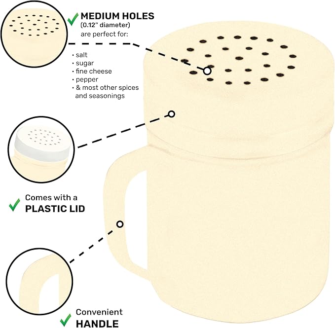 CUSINIUM 6oz Beige Stainless Steel Salt Pepper Dredge Shakers - With Plastic Cap - With Handle - Pack of 2