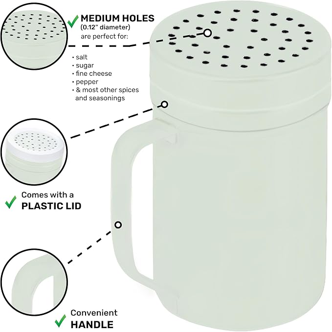 CUSINIUM 14oz Sage Stainless Steel Salt Pepper Dredge Shakers - With Plastic Cap - With Handle - Pack of 2
