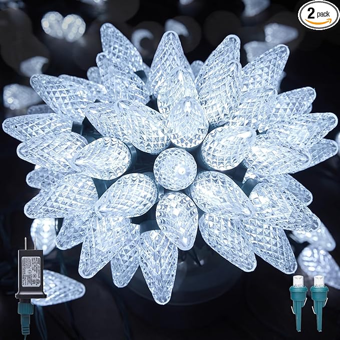 - Waterproof and Shatterproof Pure White Christmas Lights: Designed with impact-resistant, shatterproof C9 LED bulbs that withstand drops; Christmas outdoor lights are IP44 waterproof, and can withstand extreme temperatures, rain, wind, and damp climates, ensuring durability and safety, suitable for both indoor and outdoor use
