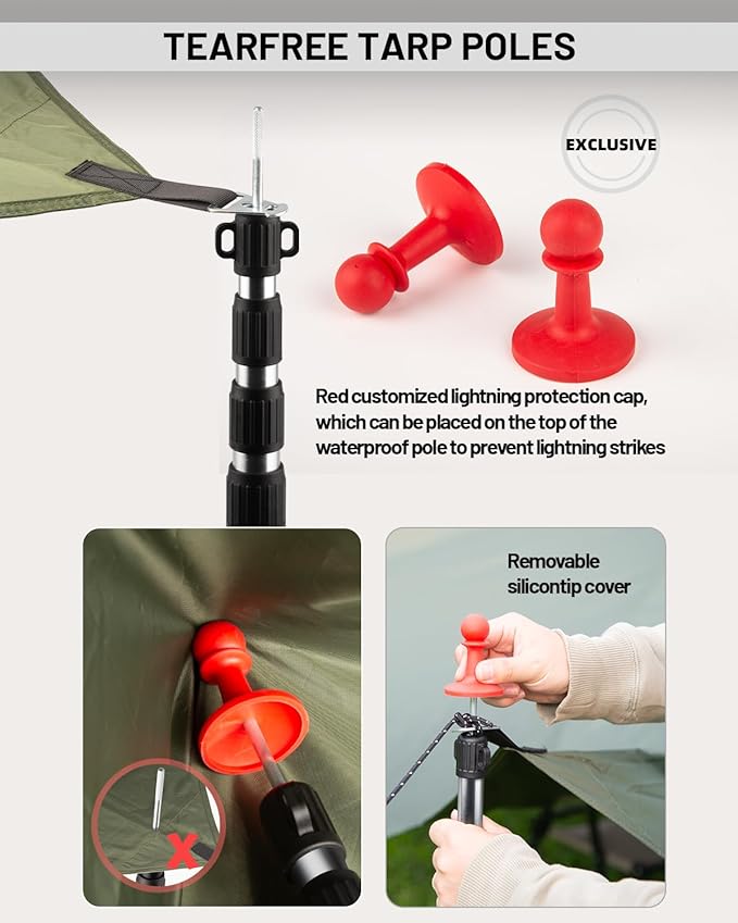 - ANTI-SLIP BOTTOM: This tarp poles features a hard silicone bottom cap that prevents the pole from sliding, making it easier to hold it upright when you use poles