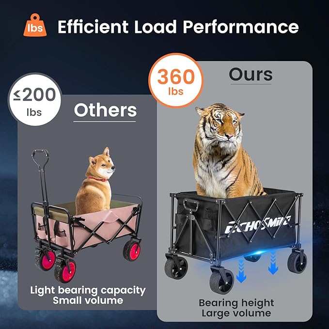 - 【Glide Smoothly & Steer Freely】Equipped with 6.7'' diameter wheels and 3'' wide treads, plus a dual-bearing system for smooth motion, the front wheels rotate 360° for maximum control. Easily handles sand, grass, and uneven ground, making pulling or pushing effortless, even when fully loaded.