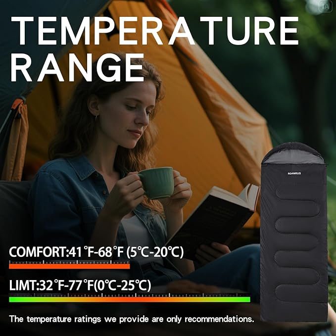 - 【3/4 Season Sleeping Bag】: Comfort temperature is 41℉-68℉(5℃-20℃). Recommended limit temperature is 32℉-77℉(0℃-25℃).Our adult or kids sleeping bag are convenient to carry and storage.Perfect for emergency,camping,backpacking,travelling and hiking