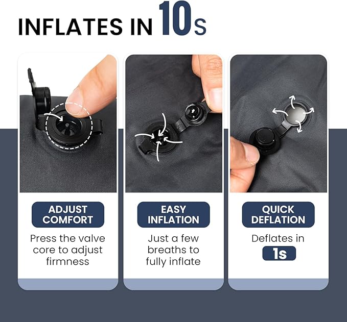 - Versatile Use – Perfect for hiking, camping, backpacking, fishing, beach outings, RV trips, or any outdoor adventure. Whether you're lying in a tent or traveling by plane, the inflatable and cushioned design ensures a comfortable rest wherever you are.