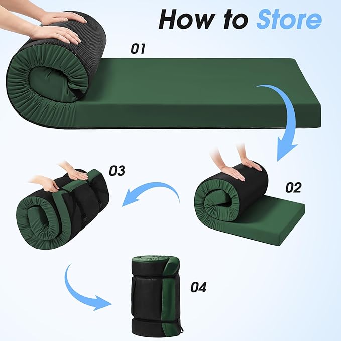 - SUPER COMFORTABLE AND SOFT: The camping mattress is made of carbon fiber high elasticity memory foam, which can effectively relieve muscle pain and provide comfortable sleeping space, carbon fiber can absorb the odor of the sponge, and high-density support sponge is suitable for all kinds of hard floors. Breathable and comfortable fabric cover is suitable for all seasons, allowing you to get full rest.