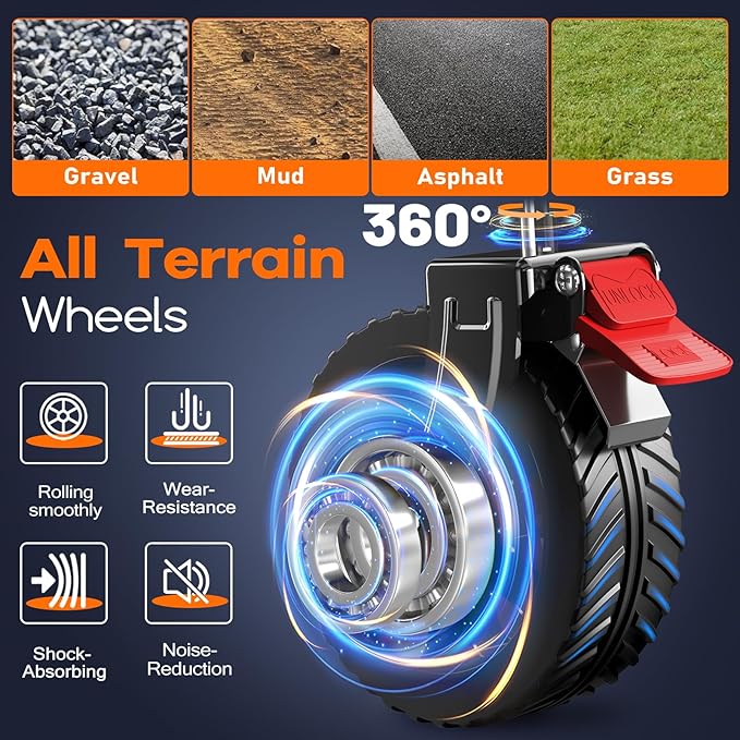 - ใ๐ฏ๐ฒ๐ฌยฐ๐ฅ๐ผ๐๐ฎ๐๐ถ๐ผ๐ป ๐จ๐ป๐ถ๐๐ฒ๐ฟ๐๐ฎ๐น ๐๐น๐น-๐๐ฒ๐ฟ๐ฟ๐ฎ๐ถ๐ป ๐๐น๐ฒ๐ ๐ถ๐ฏ๐น๐ฒ ๐ช๐ต๐ฒ๐ฒ๐น๐ ๐๐ถ๐๐ต ๐๐ฟ๐ฎ๐ธ๐ฒ๐, ๐ฆ๐๐ถ๐๐ฎ๐ฏ๐น๐ฒ ๐ณ๐ผ๐ฟ ๐ฉ๐ฎ๐ฟ๐ถ๐ผ๐๐ ๐ฅ๐ผ๐ฎ๐ฑ ๐ฆ๐๐ฟ๐ณ๐ฎ๐ฐ๐ฒ๐ใThis beach carts features double bearings all-terrain wheels, allowing for flexible steering and smooth rolling on various road surfaces such as mud, grass. The two 360ยฐ rotation front wheels with brakes, effectively to stop and prevent the wagon from moving. It' s shock-absorption and noise-reduction, ensuring durability and resistance to wear and tear.
