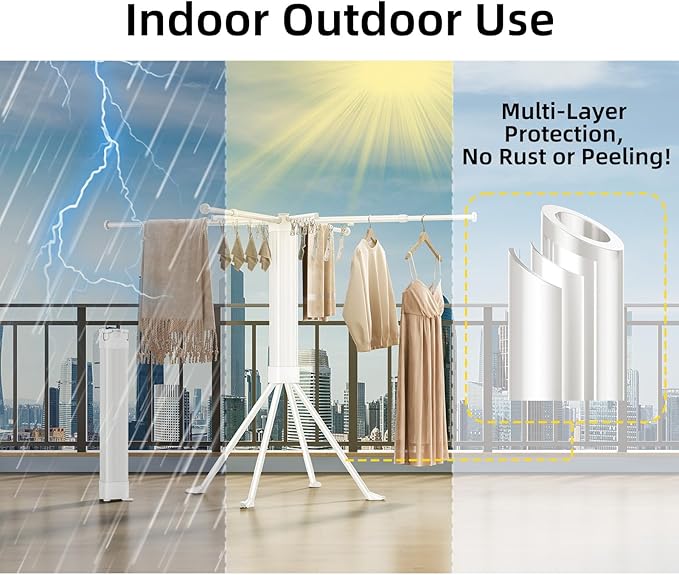 - 【Superior Quality & Stability】Constructed from durable, lightweight carbon steel, this clothes drying rack foldable supports up to 88 pounds with ease. Its reinforced base and four non-slip feet ensure steadfast stability. A robust five-layer anti-rust coating protects against water spots, promising a long-lasting performance even under frequent use