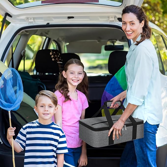 Insulated Casserole Carrier, Portable Casserole Carrier for Hot or Cold Food Lunch Tote Warmer or Cooler Bag, Lasagna Lunch Bag for Potluck Parties- Fits 9" x 13" Baking Dish-Charcoal Grey