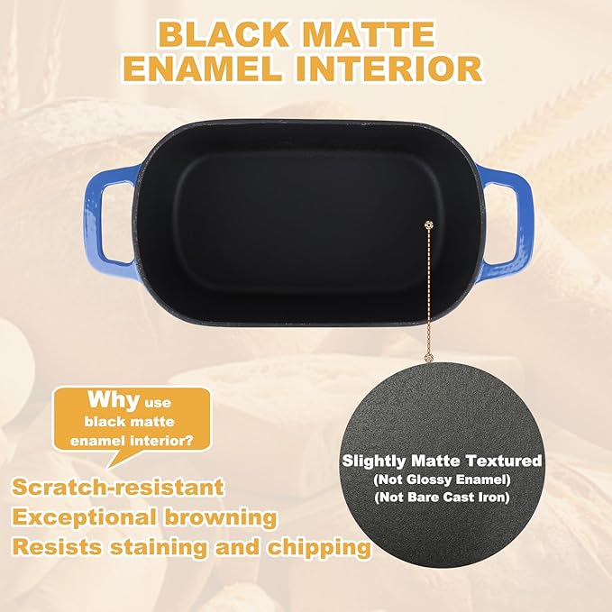 - Black Matte Enamel Interior: Scratch-resistant and resistant to staining or chipping. Its textured surface promotes excellent browning—perfect for baking homemade bread