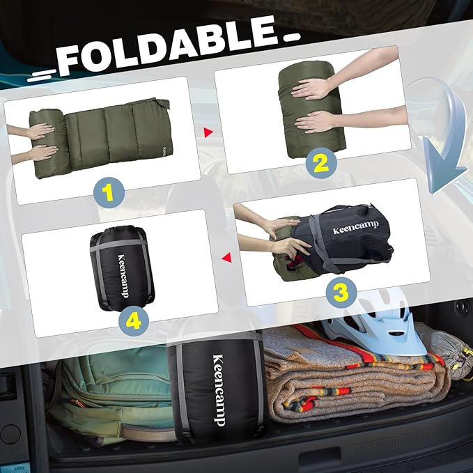 - Larger and Wider: Keencamp sleeping bag measures 74.80*33.07 inches, with a package size of 16.53*13.38*5.51 inches, weight 6.72lbs. The oversized sleeping bag for adults of 6 feet in tall, to provide enough space and even allow XXL individuals to move freely.