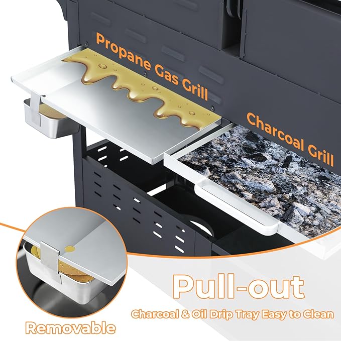 - 【Two Cooking Options】This versatile grill offers both gas and charcoal cooking options, giving you the flexibility to enjoy the convenience of gas or the smoky flavor of charcoal. You can easily switch between the two for a custom grilling experience