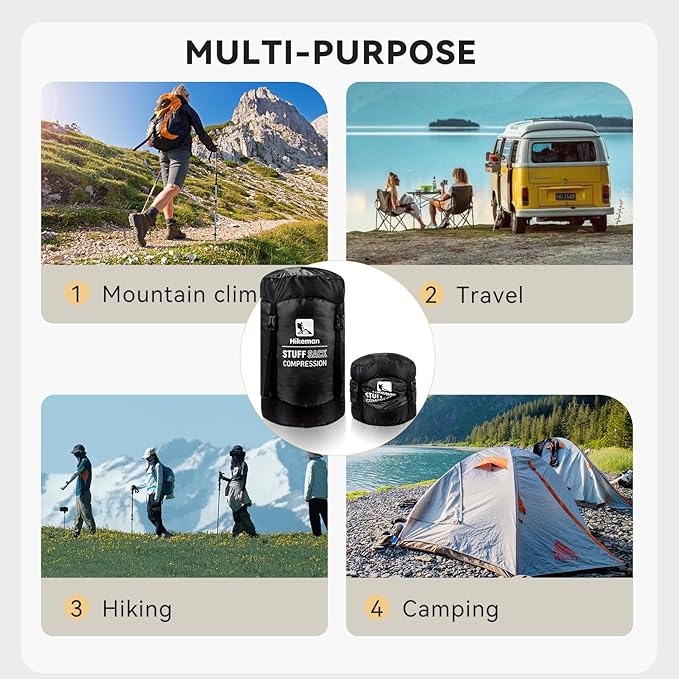 - 【SAVE 50% MORE SPACE】Our compression stuff sack is an incredibly simple and practical solution to space-saving, they will give you more space to pack what you need and give you an unprecedented portable experience