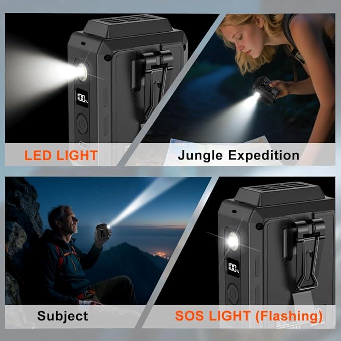 - ❃【4in1 Portable Fan】 1. Waist clip 2. Neck hanging fan 3. Flashlighting with high brightness 4. Desktop fan with stand