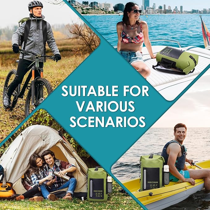 - 100% Waterproof Protection & Floating Design: Crafted with high-strength PVC and triple-layer roll-top closure, hualonger dry bag ensures complete waterproof protection for all weather conditions. Its air-tight seal keeps gear dry even submerged in water. Plus, the floating design prevents loss during water activities like kayaking or rafting