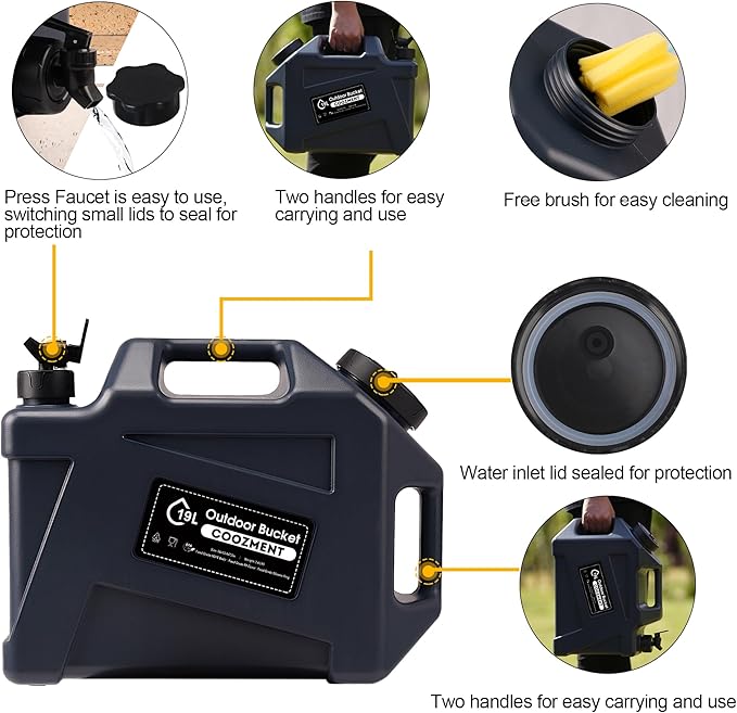 - 【Convenient Water Dispensing Design】: The Water jug has a 4" wide diameter bucket spout for easy cleaning and filling, and a unique faucet on the other part to control the dispensing speed. Compared to other Containers, you don't have to struggle to unscrew the lid, just simply press or lift to dispense water.