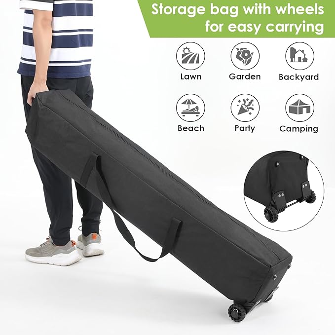 - EASY TO CARRYING: Heavy duty canopy is folded to a size of 46??× 8.7??× 8.7?? weighs 38 LBS. Tailgate tent has a wheeled bag ( wheels are not removable), easy to storage and carrying, suitable for outdoor activities