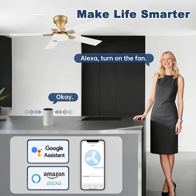 - 【APP/Remote/Voice Control】Our Smart Ceiling Fans with Lights come with remote control,APP control and wifi voice control via Alexa and google assistant, allowing you to effortlessly adjust the fan speed, dim the lights, and integrates into your smart home simply,truly making your living space more intelligent and convenient