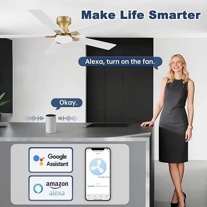 - 【APP/Remote/Voice Control】Our Smart Ceiling Fans with Lights come with remote control,APP control and wifi voice control via Alexa and Google assistant, allowing you to effortlessly adjust the fan speed, dim the lights, and integrates into your smart home simply,truly making your living space more intelligent and convenient