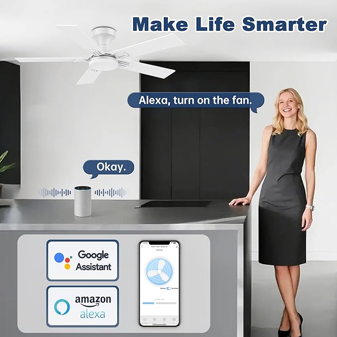 - 【APP/Remote/Voice Control】Our Smart Ceiling Fans with Lights come with remote control,APP control and wifi voice control via Alexa and google assistant, allowing you to effortlessly adjust the fan speed, dim the lights, and integrates into your smart home simply,truly making your living space more intelligent and convenient