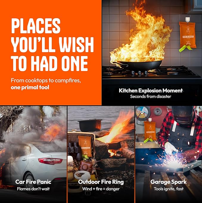 - When Fire Breaks Out, Be Ready in Seconds— A stovetop flare-up. An RV spark. A backyard mishap. Wherever danger strikes, the Primyx fire blanket for home and kitchen is your instant defense. no mess, no panic, no training needed.