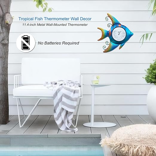 Fish-Shape Wall Thermometer, 11-Inch Battery-Free Temperature Gauge, Vintage Nautical Decor for Indoor & Outdoor Use, Auto-Calibrates in 3 Hours