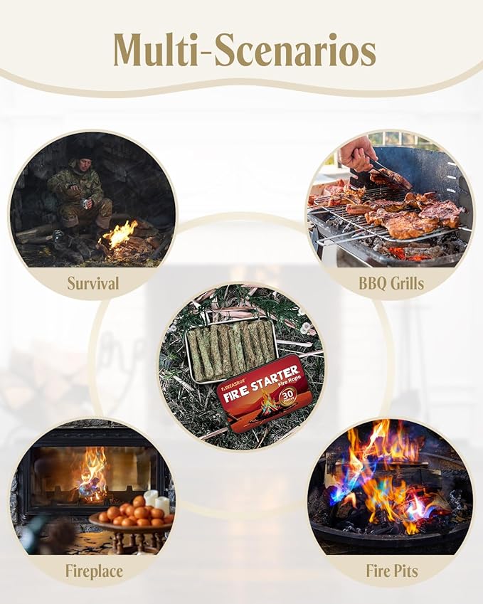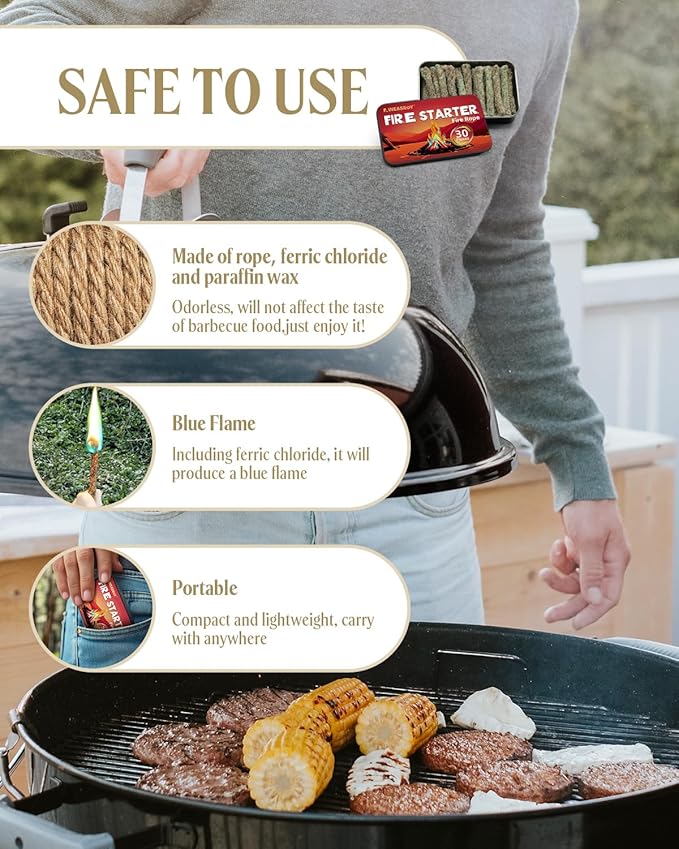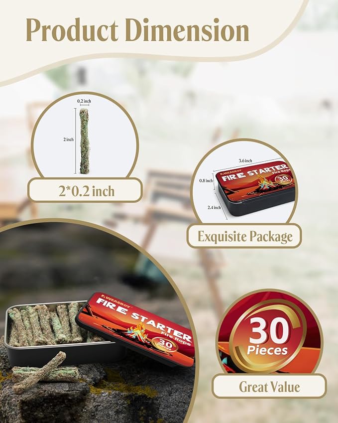 - 30-Pack Value Kit for Versatile Use: 30 ropes per box, great for sharing with teams or stocking up for long trips. Essential for camping, bushcraft, hunting, emergency fire-starting, or backyard fire pits.