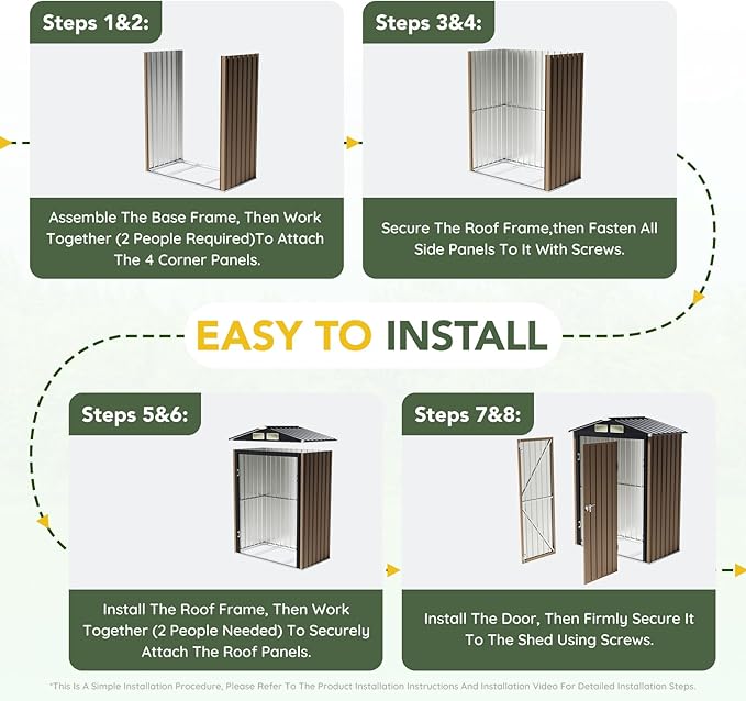 - Steel Construction & Compact Size: This shed is ideal for storing garden tools, bicycles, pool supplies, and seasonal equipment in limited outdoor spaces.