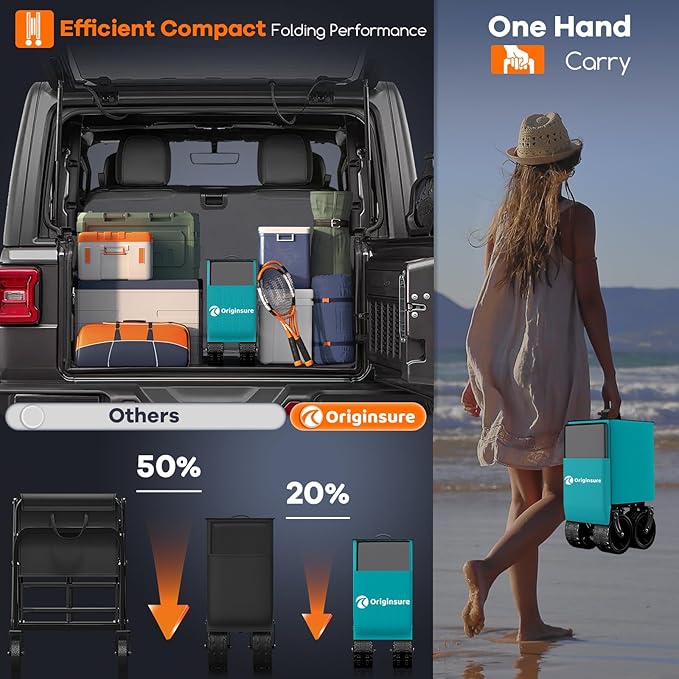 - ใ๐ณ.๐ฒ๐ต ๐ฐ๐ ๐ณ๐ ๐๐ฎ๐ฟ๐ด๐ฒ ๐๐ฎ๐ฝ๐ฎ๐ฐ๐ถ๐๐ ๐๐ถ๐๐ต ๐ฆ๐บ๐ฎ๐น๐น๐ฒ๐ฟ ๐๐ผ๐น๐ฑ๐ฒ๐ฑ ๐ฆ๐ถ๐๐ฒ ๐ฃ๐ผ๐ฟ๐๐ฎ๐ฏ๐น๐ฒ ๐๐ผ๐น๐น๐ฎ๐ฝ๐๐ถ๐ฏ๐น๐ฒ ๐๐ฒ๐ฎ๐ฐ๐ต ๐ช๐ฎ๐ด๐ผ๐ปใOriginsure foldable wagon cart, 37.40 "L x 24.21 "W x 24.00 "H large unfolding size, 7.69 cu ft/220L massive storage space, double the capacity of similar wagons. Adopting an innovative folding design that maintains its height, the Capacity reduces to 1.36 cu ft when folded, only 1/3 of other carts. Compact and space-saving, it can be perfectly stored in the car trunk and room corners.