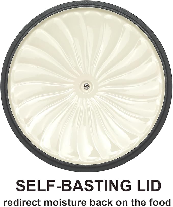 - Closed Heat Cycle: This dutch oven for bread baking is designed with a circular shower lid, the raised design of the lid makes the water vapor circulate in the pot, locks the food's nutrition and moisture, keeps the food's nutrition and moisture