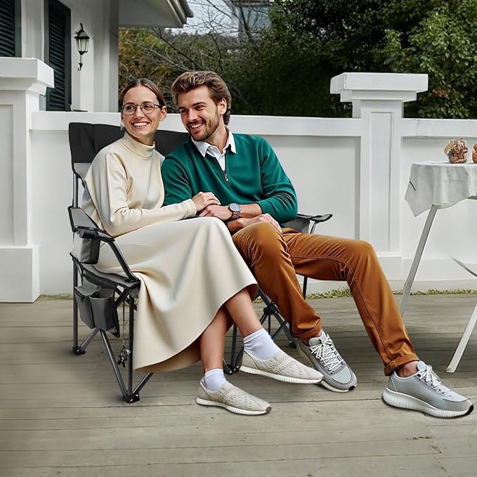 - ✨High Back Support & Oversized Comfort for Adults✨ This high back camping chair is designed as an oversized camping chair and 2 seat folding chair, perfect for adults seeking extra space—ideal for two people to relax without feeling squeezed. As one of the high back camping chairs for adults, its tall backrest eases neck and shoulder strain, while the generous dimensions solidify it as a top choice among oversized camping chairs. Whether you’re lounging as a camp chair or enjoying the outdoors, this 2 seat folding chair blends support and size seamlessly.
