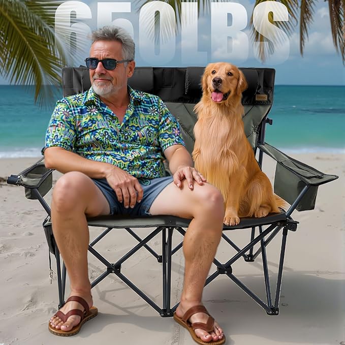 - ✨Foldable & Portable: A Folding Camping Essential✨ This foldable chair doubles as a 2 seat folding chair and folding camping essential, folding down compactly to fit in car trunks or storage. As an oversized camping chair that’s surprisingly easy to carry, it’s more than just a foldable chair—it’s a must-have for anyone needing a portable camp chair. Whether you’re packing for a trip or storing it at home, this folding design makes it a practical choice.
