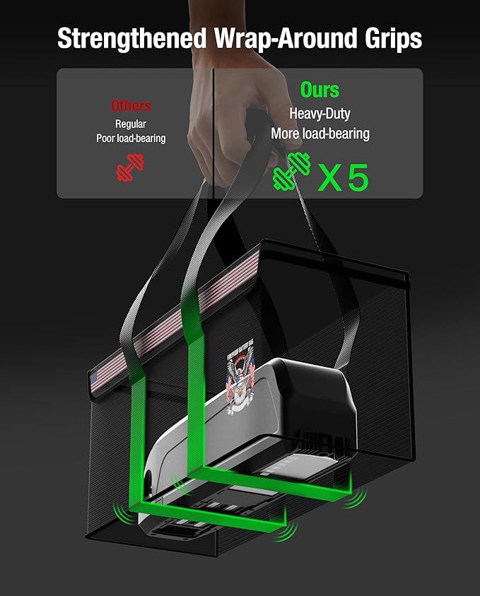 - 【Durable & Multi-Purpose Use】Beyond batteries, this explosion-proof lithium battery storage box bag doubles as a fireproof safe for documents, tools, or emergency gear. Rip-proof stitching + rugged construction ensures long-term reliability—built to last a lifetime