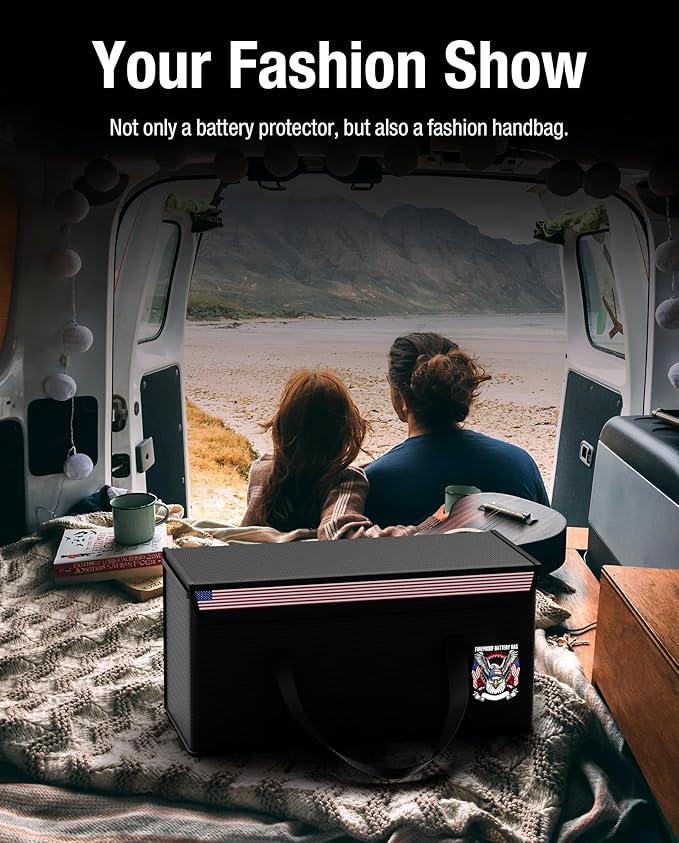 - 【Worry-Free Charging & Travel Safe】Waterproof, dustproof, and radiation-shielded to extend battery life. Fire-resistant inner lining prevents battery combustion during chargins. Ideal for air travel and perfect for camping, RVs, and home storage