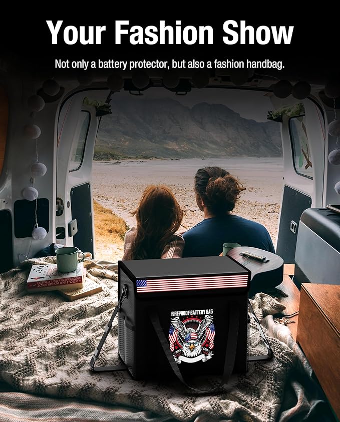 - 【Worry-Free Charging & Travel Safe】Waterproof, dustproof, and radiation-shielded to extend battery life. Fire-resistant inner lining prevents battery combustion during chargins. Ideal for air travel and perfect for camping, RVs, and home storage