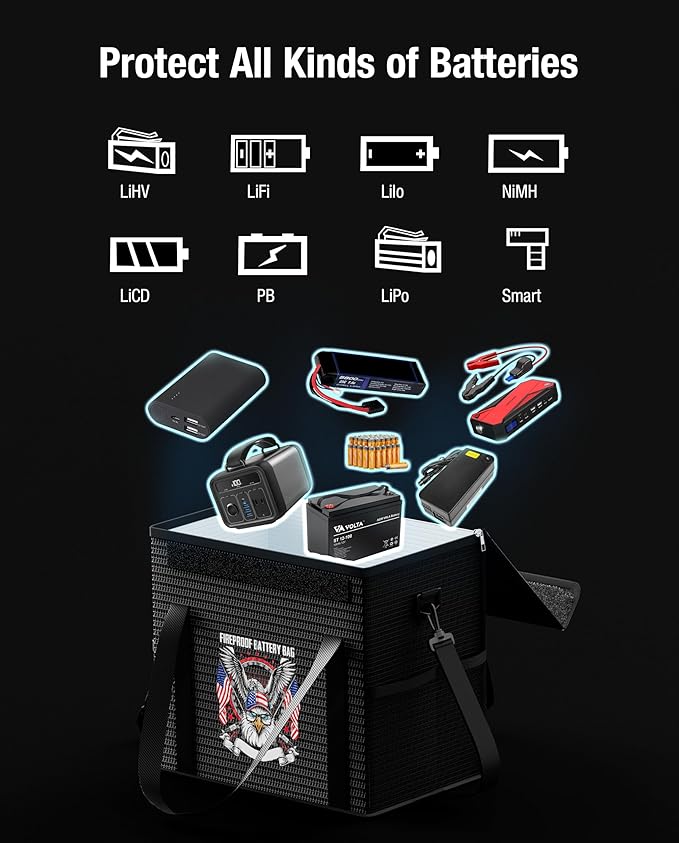 - 【Durable & Multi-Purpose Use】Beyond batteries, this explosion-proof lithium battery storage box bag doubles as a fireproof safe for documents, tools, or emergency gear. Rip-proof stitching + rugged construction ensures long-term reliability—built to last a lifetime
