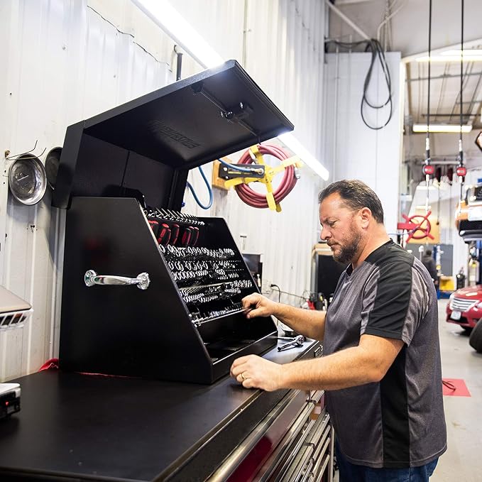 - Heavy-duty steel toolbox: The tool storage chest is made from high-quality steel with professionally welded seams (not spot welded) and assembled with precision. This keeps your SAE or metric tools safe and extends the lifespan of your toolbox.