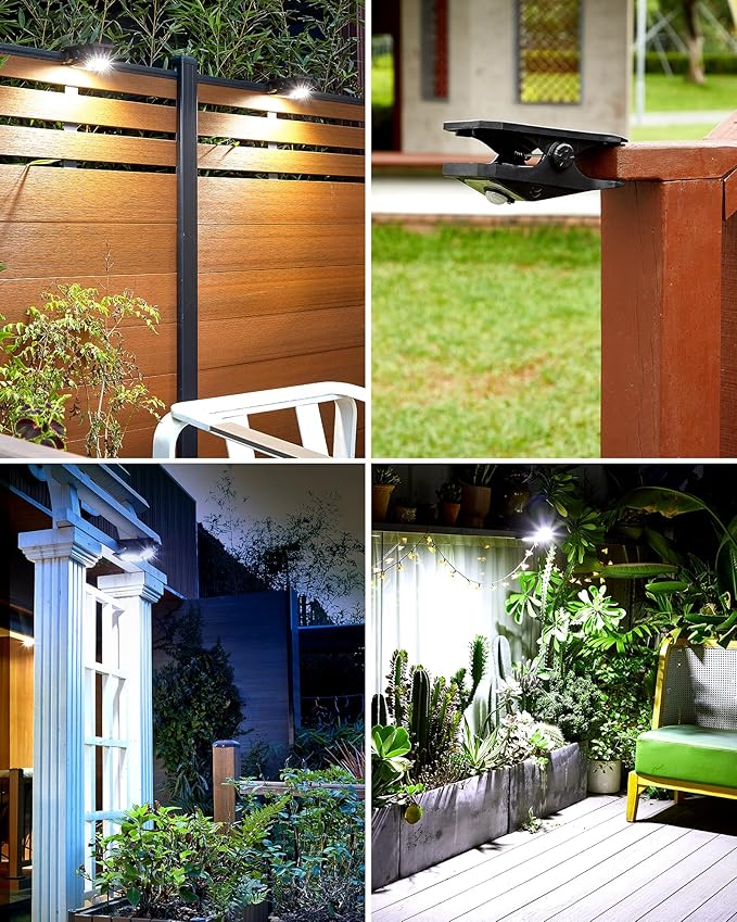 - Versatile Installation Options: No drilling required! Our clip on solar lights outdoor features a sturdy clip, along with hook and screw mounting options, for flexible and hassle-free installation anywhere like fence,patio,gutter,walkway,camping