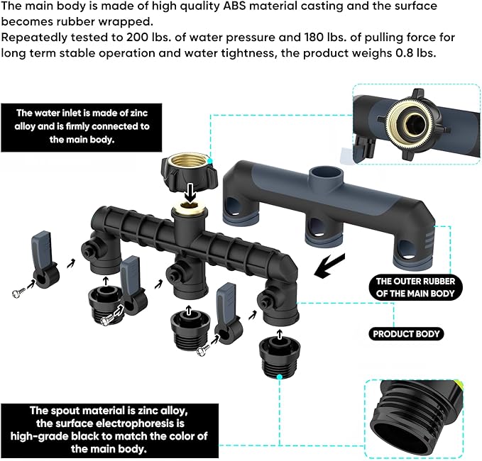 - 4:The new design of the High Flow Garden Hose Diverter is a major improvement and is especially suited for use by gardeners who regularly regulate the flow of water in different garden areas.With an enlarged bore of 0.4 inches, it is able to withstand high flow rates and high water pressure without restricting the flow of water through, and its individual spout discharges 0.77 pounds of water per second.