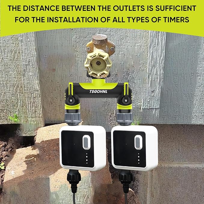 - 2: It is designed to install multiple garden irrigation system timers or large timers at the same time, we extend the spout spacing to 2 inches; both male and female teeth are made of metal.