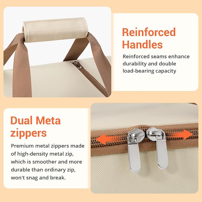 Double Insulated Casserole Carrier for Hot or Cold Food,Pie Carrier Bag Lunch Tote for Potluck Parties/Picnic/Cookouts, Fits 9"x13" Baking Dish, Beige