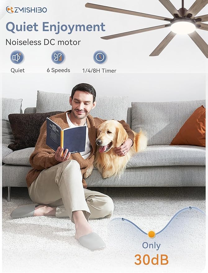 - Larger Illuminated Area and Brighter LED Light: Our LED Panel is 10.68 inches, providing a wider illuminated area and ensuring ample light in every corner. With a 2400LM brightness, the lighting effect is brighter than other 80-inch ceiling fans with lights. And Long hours of reading or working won't cause eye strain. At the same time, this ceiling fan with light and remote offers three adjustable color temperatures (3000K/4500K/6000K) to suit various lighting needs.