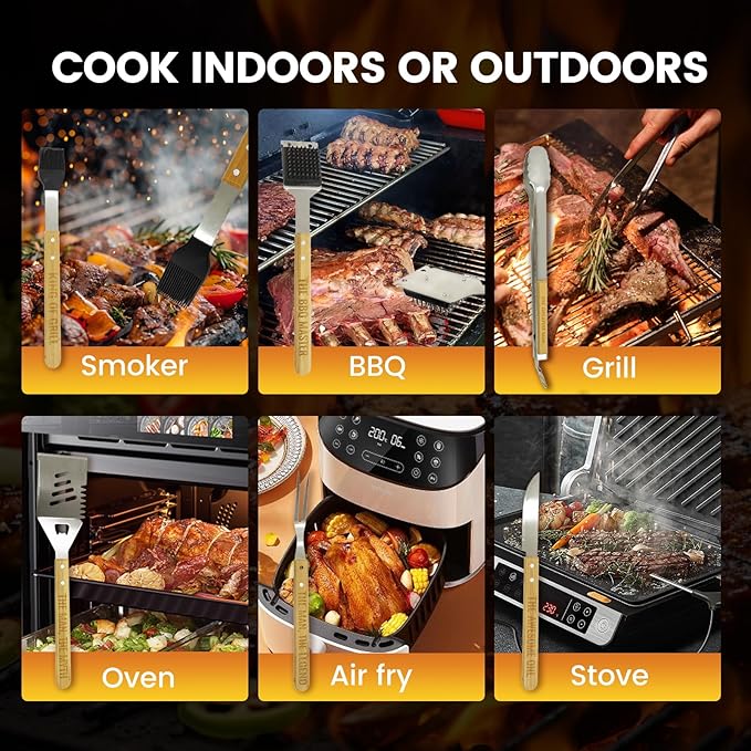 - 【Easy to Clean & DIY Gift Stickers】- This premium barbecue tools set features a non-stick coating and smooth surfaces, making cleanup effortless—just rinse with warm, soapy water or toss in the dishwasher. Plus, we’ve included DIY gift stickers so you can customize your present for any grilling hero in your life! Whether it’s for Dad, Grandpa, or Uncle, find the perfect sticker to create a one-of-a-kind gift that’s as special as they are.