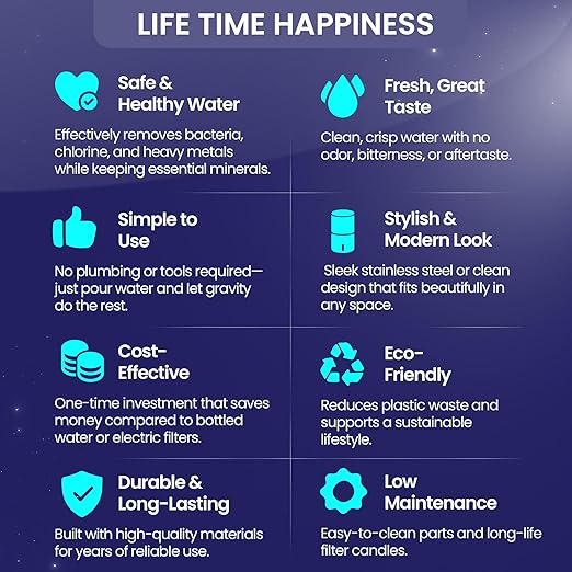 - Included Components : Filter, Storage Tank, Stand, Spigot, Screws, Instruction Manual