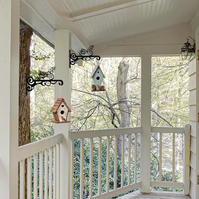 hogardeck Plant Hangers Outdoor Decor, 2 PCS 10??Metal Hanging Plant Bracket with Buttterfly and Flower for Garden Patio Yard Decor, Plant Hooks for Hanging Plants, Bird Feeder, Wind Chime, Lantern