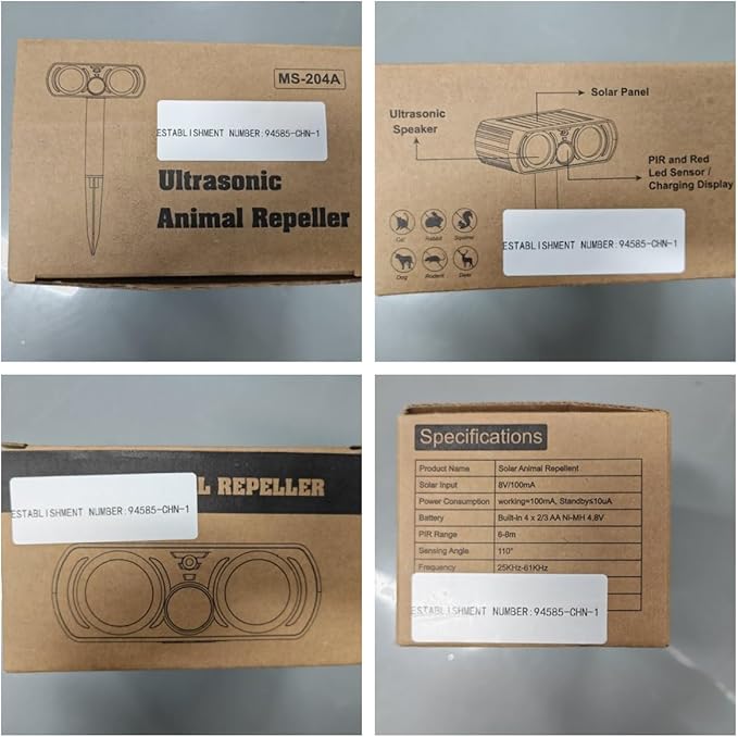 - Easy to Use: Passive infrared sensor (PIR) detects and triggers the movement, and then the ultrasonic speaker makes noise to scare away common outdoor animals. It is very suitable for gardens, courtyards and farms